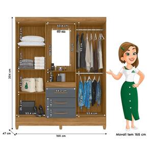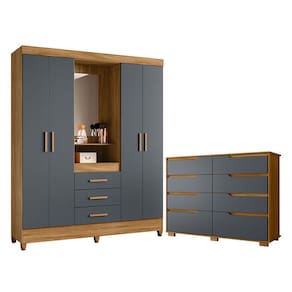 Guarda Roupa Casal Capelinha Capri e Cômoda Georgia Freijó Cinza – Moval