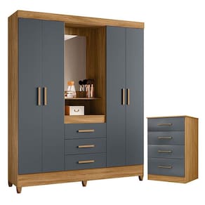 Guarda Roupa Casal Capelinha Capri e Cômoda MS913 Freijó Cinza – Moval