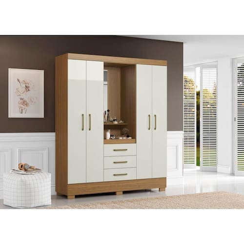 Confira o Guarda Roupa Casal 4 Portas 3 Gavetas Paris Aramóveis, é produzido inteiro em aglomerado 15mm e 12mm, proporcionando resistência e longa durabilidade. Seu amplo espaço interno assegura firmeza ao móvel, enquanto os puxadores de plástico conferem resistência. As gavetas espaçosas, com fixação aprimorada, oferecem conforto ao armazenar roupas. O cabideiro em madeira garante a sustentação das roupas. As dobradiças metálicas proporcionam maior durabilidade e resistência ao abrir e fechar as portas, e as corrediças das gavetas em metal oferecem deslize suave. O acabamento em verniz texturizado fosco não apenas conserva o móvel, mas também mantém o brilho constante, proporcionando beleza.