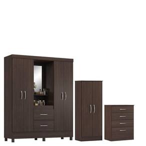 Guarda Roupa Solteiro Capelinha Lord com Multiuso Viena com Cômoda Astral Café Touch -Demóbile