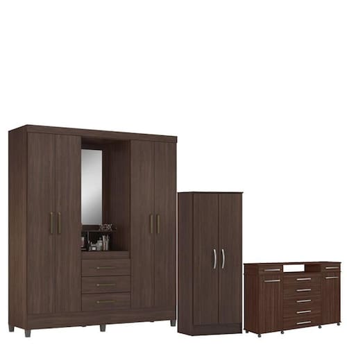 Guarda Roupa Casal Capelinha Pérsia com Multiuso Viena com Comôda London Café - Demóbile