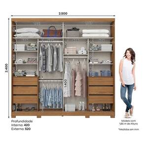 Guarda Roupa Casal Cayman 2 Portas Nature Henn