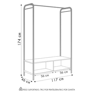Peso Suportado: 7 Kg por prateleira e 5 Kg por gaveta.