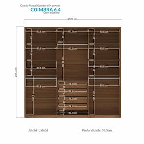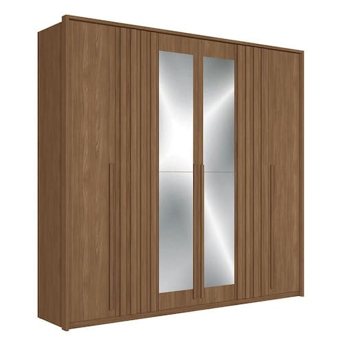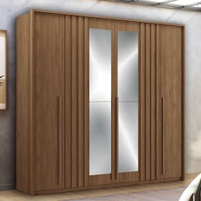ESPECIFICAÇÕES: Estrutura em MDP Pintura UV 6 Portas Dobradiças metálicas com sistema de amortecimento Puxadores em madeira revestidos nas portas Espelhos em 2 portas 4 Gavetas Corrediças telescópicas Puxadores em ABS Cabideiros em alumínio oblongo Prateleiras Maleiro Amplo espaço interno