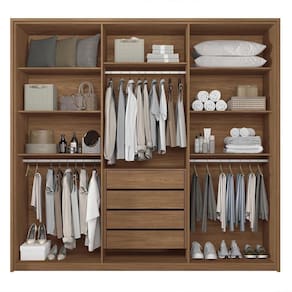 Guarda Roupa Casal Coimbra 6 Portas Jatobá/areia - Santos Andirá Jatobá/areia Guarda Roupa Casal Coimbra 6 Portas - Santos Andirá O Guarda-Roupa Casal Coimbra 6 Portas combina elegante e funcionalidade para um ambiente organizado. Com estrutura em MDP e pintura UV, garantia durabilidade e resistência. Suas seis portas possuem dobradiças metálicas com amortecimento, proporcionando um fechamento suave. Os puxadores em madeira revestida trazem um toque sofisticado. Conta com quatro gavetas com corrediças telescópicas, cabideiros em alumínio oblongo, prateleiras e maleiro, oferecendo amplo espaço interno para armazenar roupas e acessórios com praticidade. ESPECIFICAÇÕES: - Estrutura em MDP - Pintura UV - 6 Portas - Dobradiças metálicas com sistema de amortecimento - Puxadores em madeira revestidos nas portas - 4 Gavetas - Corrediças telescópicas - Puxadores em ABS - Cabideiros em alumínio oblongo - Prateleiras - Maleiro - Amplo espaço interno