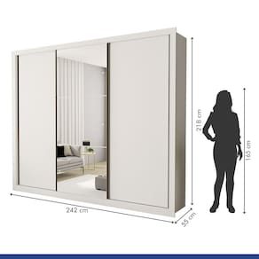 Características: Tipo de Guarda-roupa: Casal Ambiente Principal: Quarto Estilo: Moderno Material Principal: MDP Acabamento: Pintura Escala de Brilho: Brilhante Possui Portas: Sim Tipo de Porta: Correr Possui Gavetas: Sim Tipo de Gaveta: Interna Possui Calceiros: Sim Possui Cabideiros: 03 Quantidade de Portas: 03 Quantidade de Gavetas: 06 Quantidade de Prateleiras: 11 Formato do Espelho: Retangular Possui Prateleiras: Sim Quantidade de Espelhos: 03 Espelhos com Tamanhos Iguais Complexidade da Montagem: Alta: deve ser montado por um montador especializado Tipo de Puxador da Porta: Embutido Tipo de Puxador da Gaveta: Embutido Tipo de Fixação do Espelho: Parafusos Tipo de Corrediça da Gaveta: Metálica Telescópica Material do Puxador da Porta: Plástico Tipo de Dobradiça/Corrediça da Porta: Alumínio Possui Espelhos: Sim Necessita Montagem: Sim Possui Espaço para Vestidos Longos: Sim Sistema de Montagem: Parafusos e Minifix Espessura do Espelho: 3 mm Peso Máximo por Gaveta: 10 kg Peso Máximo por Prateleira: 5 kg Guarda-Roupa Suporta Até: 90 kg Origem do Produto: Nacional Gaveta com Chave: Não Possui Painel de TV: Não Gaveta com Divisores: Não Possui Espelho Interno: Não Possui Organizador de Gaveta: Não Possui Sapateira: Não Possui Pés: Não