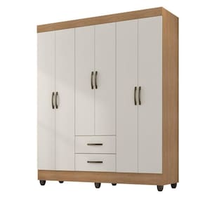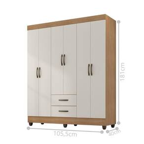 Feito em MDP. Contém 6 portas, 2 cabideiros em alumínio e 2 gavetas com corrediças metálicas, facilitando a abertura e deslizamento.