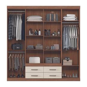 Feito em MDP, com quatro gavetas com corrediças telescópicas garantindo um deslizamento suave e silencisoso, possui onze prateleiras amplas e espaçosas podem ser utilizadas para guardar edredons, cobertores, caixas e sapatos