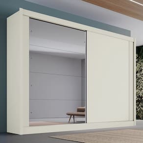 Guarda Roupa Casal com Espelho 2 Portas 4 Gavetas - Creta-Off White - Móveis Europa