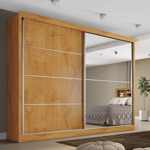Guarda Roupa Casal com Espelho 2 Portas 4 Gavetas - Verona-Peroba - Made MarcsO Guarda Roupa Verona é o ideal para quem precisa de organização com pouco espaço. Este guarda roupa possui 2 portas de correr com deslizamento em trilho inferior de alumínio, para maior facilidade na abertura. São 04 gavetas com corrediças telescópicas, com abertura total das gavetas e deslizamento silencioso, o suporte de gaveta é de MDF, que proporciona mais resistência. Prateleiras espaçosas para roupas de cama e sapatos. Seu interior conta ainda com um nicho prático e funcional. Cabideiros e calceiro em alumínio, qualidade e durabilidade. As portas são fracionadas com perfil de alumínio, para evitar empeno e traz mais robustez e resistência para seu guarda roupa. Fabricado em MDF 100%, com chapas de 15mm que proporciona mais firmeza ao guarda roupa. E tudo isso com material ecologicamente correto. Perfeito não é? Aproveite!Faz parte deste ambiente:Guarda Roupa Casal com Espelho 2 Portas 4 Gavetas - Verona-Peroba - Made MarcsObs: Objetos de decoração não inclusos.Particularidades do guarda-roupa:Características:- 100% MDF- Divisão Ele e Ela- Perfil de alumínio nas portas- Portas deslizantes com trilho de alumínio- Roldanas com sistema de amortecimento e regulagem- Gavetas com corrediças telescópicas- Cabideiros e calceiros espaçosos- Compartimento para calçados - Excelentes repartições e amplo espaço interno - Portas com perfil de alumínioDimensões:Altura: 2,18 metrosLargura: 2,02 metrosProfundidade: 51 centímetrosInformações Importantes:-O envio desse produto é feito através de transportadora.-Produtos podem apresentar diferenças de tonalidades entre a foto na tela e o produto real, devido a calibração de cor de tela.-Limpar com flanela ou pano macio. Não utilizar álcool. Não utilizar produtos abrasivos ou corrosivos.-Nós prezamos pela qualidade da entrega em primeiro lugar, trabalhamos com transportadoras altamente selecionadas e os melhores materiais de embalagem.-A montagem é de total responsabilidade do comprador. Antes de comprar, verifique o espaço disponível para a montagem.-Certifique-se de que o produto caiba em elevadores e vãos de escadas, não fazemos içamentos. Quaisquer despesas deste tipo ficam a cargo do cliente-Garantia de 3 meses contra defeitos de fabricação.