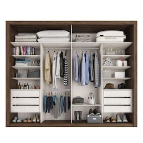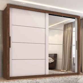 Características: Estrutura em MDP Contém espelho 2 Portas de correr 6 Gavetas Colmeias organizadoras Puxadores em MDF Trilho inferior de alumínio Trilho superior de plástico Sistema com rolamentos e freios Corrediças telescópicas Cabideiros metálicos Peso suportado pelo produto: 81 kg
