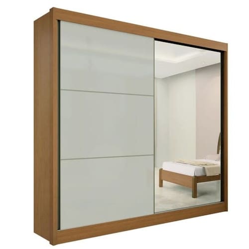 Guarda Roupa Casal com Espelho 2 Portas 6 Gavetas - Titanium-Cinamomo/Off White - Móveis D`Doro