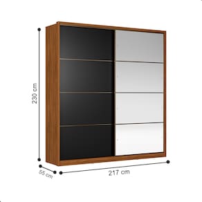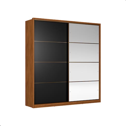 Várias prateleiras e maleiro espaçosos proporcionam uma interna completa aliada as gavetas com corrediças telescópicas, puxadores com acabamentobronze.