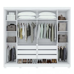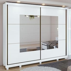 Características: 2 Portas Corrediça da Porta - Alumínio Tipo de Puxador da Porta - Externo Material do Puxador da Porta - Alumínio 06 Gavetas Tipo de Gaveta - Interna Tipo de Puxador da Gaveta - Embutido Tipo de Corrediça da Gaveta - Metálica Telescópica 8 Prateleiras 2 Calceiros 2 Cabideiros 10 Pés Material Principal - MDF Acabamento - Pintura Escala de Brilho - Fosco Sistema de Montagem - Parafusos e Minifix