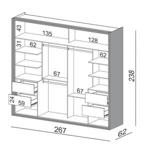 Esse guarda roupa com porta de correr é perfeito para quem quer otimizar espaço no quarto de casal, pois as portas com abertura deslizante não atrapalham a circulação do ambiente. Além disso, o seu design com 267cm possui um excelente compartimento interno com várias prateleiras, 4 gavetas e cabideiros, itens perfeitos para manter tudo no lugar e facilitar a visualização das peças.
