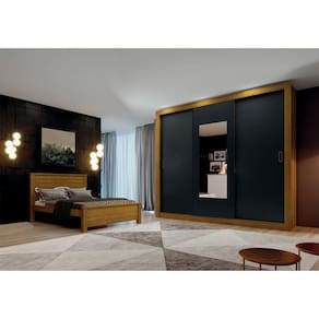 Guarda Roupa Casal com Espelho 3 Portas 4 Gavetas - Manaus New-Freijó/Preto - Leifer Móveis