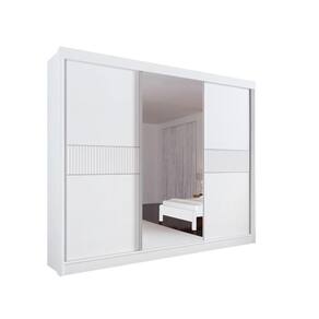 Guarda Roupa Casal com Espelho 3 Portas 6 Gavetas - Los Angeles Ripado-Branco - Móveis D'Doro