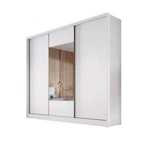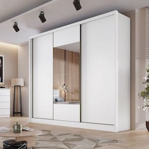 100% MDF, IDEAL PARA PEQUENOS ESPAÇOS, ALTO E COM BOA PROFUNDIDADE, COLUNADO EM 25MM, KIT ESPELHO PARAFUTILIZADO, EXCELENTE DIVISÃO INTERNA, TRILHO INFERIOR EM ALUMÍNIO E ROLDANAS COM AMORTECEDORES, PERFIL PUXADOR E BATENTE ALINHADOR EM ALUMÍNIO BRONZE, ROLDANA SUPERIOR COM GUIA ZERO E FREIO, GAVETAS COM PUXADORES E CORREDIÇAS TELESCÓPICAS, CABIDEIRO E CALCEIRO EM ALUMÍNIO. Acabamento da Prateleira: Pintura Texturizada UV Escala de Brilho da Prateleira: Brilhante Possui Cabideiros: 02 Acabamento da Gaveta: Pintura Texturizada UV Escala de Brilho da Gaveta: Brilhante Material do Puxador da Gaveta: ABS Possui Organizador de Gaveta: Não Acabamento da Porta: Pintura Texturizada UV Escala de Brilho da Porta: Brilhante Material do Puxador da Porta: Alumínio Acabamento dos Pés: Acompanha Cama Auxiliar: Acompanha Colchão: Altura da Cama: Altura do Espelho: 60 Altura do Espelho 01: Altura do Espelho 02: Altura do Espelho 03: Altura do Espelho 04: Altura do Espelho 05: Altura do Espelho 06: Altura dos Pés: Ambiente Principal: Quarto Cama Auxiliar Acompanha Colchão: Cama Auxiliar Suporta Até (kg): Cama Suporta Até (kg): Complexidade da Montagem: Média: pode ser montado por mais de uma pessoa e/ou necessite de maior conhecimento para montagem Cor: Branco Cor do Produto: Branco Cor Flex: Cor Interna: Branco Escala de Brilho: Brilhante Espessura do Espelho: 3 Fita Integrada: Formato do Espelho: Retangular Gaveta com Chave: Não Guarda-Roupa Suporta Até (kg): Informações Complementares: Itens Inclusos: 1 Guarda-Roupa, Kit Ferragens e Manual de Montagem Largura da Cama: Largura do Espelho: 65 Largura do Espelho 01: Largura do Espelho 02: Largura do Espelho 03: Largura do Espelho 04: Largura do Espelho 05: Largura do Espelho 06: Linha ou Coleção: Arezzo Manual de Especificação Técnica: Manual de Montagem e Instalação: https://cdn2.madeiramadeira.com.br/atributo/moveis-novo-horizonte/983842-manual-guarda-roupa-arezzo-plus.pdf Material da Gaveta: MDF Material da Porta: MDF Material da Prateleira: MDF Material dos Pés: Material Principal: MDF Montagem Flex: Necessita Montagem: Sim Origem do Produto: Nacional Peso: 190 Peso Máximo por Gaveta: 5 Peso Máximo por Prateleira: 10 Possui Calceiros: 01 Possui Espaço para Vestidos Longos: Possui Espelho: Sim Possui Espelho Interno: Possui Ganchos: Possui iluminação: Possui Painel de TV: Possui Pés: Não Possui Portas: 03 Possui Prateleiras: 07 Possui Sapateira: Profundida de Cama: Quantidade de Espelho: 02 Espelhos com Tamanhos Iguais Recomendações de Uso, Manutenção e Limpeza: Limpar com flanela ou pano macio seco, não utilizar produtos abrasivos, desengordurantes, álcool ou solvente. Não expor o produto diretamente à luz solar e à umidade. Sapatas Niveladoras: Sistema de Montagem: Parafuso, Cavilha e Prego Tamanho do Colchão Indicado (L x C): Tamanho do Colchão Indicado Cama Auxiliar: Tipo de Corrediça da Gaveta: Metálica Telescópica Tipo de Dobradiça/Corrediça da Porta: Metálica Tipo de Estrado: Tipo de Fixação do Espelho: Parafusos Tipo de Gaveta: Interna Tipo de Guarda-Roupa: Casal Tipo de Madeira Maciça: Tipo de Madeira Maciça da Gaveta: Tipo de Madeira Maciça da Porta: Tipo de Madeira Maciça da Prateleira: Tipo de Madeira Maciça do Puxador da Gaveta: Tipo de Madeira Maciça do Puxador da Porta: Tipo de Madeira Maciça dos Pés: Tipo de Puxador da Gaveta: Externo Tipo de Puxador da Porta: Embutido
