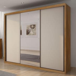 100% MDF, KIT ESPELHO PARAFUTILIZADO COLUNADO EM 25MM, INTERNO ELE E ELA, TRILHO INFERIOR EM ALUMÍNIO E ROLDANAS COM AMORTECEDORES, PERFIL PUXADOR E BATENTE ALINHADOR EM ALUMÍNIO, ROLDANA SUPERIOR COM GUIA ZERO E FREIO, EXCELENTE DIVISÃO INTERNA, GAVETAS COM PUXADORES E CORREDIÇAS TELESCÓPICAS, CABIDEIROS E CALCEIRO EM ALUMÍNIO. Acabamento da Prateleira: Pintura Texturizada UV Escala de Brilho da Prateleira: Fosco Possui Cabideiros: Sim Acabamento da Gaveta: Pintura Texturizada UV Escala de Brilho da Gaveta: Fosco Tipo de Corrediça: Metálica Telescópica Material do Puxador da Gaveta: ABS Possui Organizador de Gaveta: Não Acabamento da Porta: Pintura Texturizada UV Escala de Brilho da Porta: Brilhante Material do Puxador da Porta: Alumínio Altura do Espelho: 67 cm Ambiente Principal: Quarto codigo_ean: 7908308742147 Complexidade da Montagem: Média: pode ser montado por mais de uma pessoa e/ou necessite de maior conhecimento para montagem Cor: Cumaru Cinza Cor do Produto: Cumaru Cinza Cor Interna: Cumaru Escala de Brilho: Fosco Espessura do Espelho: 3 mm Formato do Espelho: Retangular Itens Inclusos: 1 Guarda-Roupa, Kit Ferragens e Manual de Montagem Largura do Espelho: 76 cm Linha ou Coleção: Vegas Manual de Montagem e Instalação: https://product-hub-prd.madeiramadeira.com.br/832805/documents/f952e188-e0e6-4caf-abd2-fa322f771075anualroupeiroparadizzogold.pdf Material da Gaveta: MDF Material da Porta: MDF Material da Prateleira: MDF Material Principal: MDF Necessita Montagem: Sim Origem do Produto: Nacional Peso: 197 kg Peso Máximo por Gaveta: 5 kg Peso Máximo por Prateleira: 10 kg Possui Calceiros: 01 Possui Espelho: Sim Possui Pés: Não Possui Portas: Sim Possui Prateleiras: Sim Produto Montado: Sim Quantidade de Espelho: 03 Espelhos com Tamanhos Iguais Recomendações de Uso, Manutenção e Limpeza: Limpar com flanela limpa e seca. Não usar produtos abrasivos. Sistema de Montagem: Parafuso, Cavilha e Prego Tipo de Corrediça da Gaveta: Metálica Telescópica Tipo de Dobradiça/Corrediça da Porta: Metálica Tipo de Fixação do Espelho: Parafusos Tipo de Gaveta: Interna Tipo de Guarda-Roupa: Casal Tipo de Puxador da Gaveta: Externo Tipo de Puxador da Porta: Externo Ean: 7908308742147
