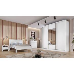 Guarda Roupa Casal com Espelho 3 Portas 8 Gavetas - Medelim-Branco - Móveis Novo Horizonte