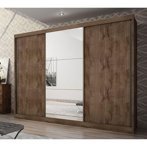 Guarda-Roupa Casal com Espelho 3 Portas 8 Gavetas Spazzio Yescasa Guarda-Roupa 100% MDF, gavetas com corrediças telescópicas, espaço para longo, interno ele e ela, trilho, puxadores, cabideiros e batentes em alumínio, roldanas com rolamento, rodizio superior duplo com freio, moldura da porta com espelho, perfil puxador e trilho inferior em alumínio bronze, kit de espelho parafusado, colunado 25 mm. Pesos e Dimensões Espessura do Espelho 3 mm Altura (cm) 236.4 cm Largura (cm) 273.6 cm Profundidade (cm) 55.5 cm Peso (kg) 266 kg Garantia Garantia 03 Meses Materiais e Acabamentos Material Principal MDF Material da Porta MDF Acabamento Pintura Acabamento da Gaveta Pintura Escala de Brilho Brilhante Escala de Brilho da Gaveta Fosco Acabamento da Porta Pintura Material da Gaveta MDF Tipo de Corrediça da Gaveta Metálica Telescópica Escala de Brilho da Porta Brilhante Tipo de Dobradiça/Corrediça da Porta Metálica Acabamento da Prateleira Pintura Escala de Brilho da Prateleira Fosco Material da Prateleira MDF Montagem Necessita Montagem Sim Complexidade da Montagem Média: pode ser montado por mais de uma pessoa e/ou necessite de maior conhecimento para montagem Sistema de Montagem Parafusos, cavilhas e minifix. Recomendações de Uso, Manutenção e Limpeza Limpar com pano úmido. Características Tipo de Porta Correr Tipo de Gaveta Interna Marca Espresso Móveis Possui Prateleiras Sim Possui Portas Sim Possui Pés Não Possui Iluminação Não Possui Gavetas Sim Linha ou Coleção Spazzio De Canto Não Gaveta com Chave Não Estilo Moderno Possui Organizador de Gaveta Não Sapatas Niveladoras Não Possui Capelinha Não Possui Espelho Interno Não Possui Sapateira Não Gaveta com Divisores Não Cor do Produto Canela Formato do Espelho Retangular Peso Máximo por Gaveta 5 kg Tipo de Puxador da Gaveta Externo Tipo de Puxador da Porta Embutido Tipo de Guarda-roupa Casal Possui Calceiros Não Possui Cabideiros 04 Possui Espelhos Sim Quantidade de Espelhos 03 Espelhos com Tamanhos Iguais Possui Espaço para Vestidos Longos Sim Origem do Produto Nacional Quantidade de Portas 3 Possui Gancho Não Ambiente Quarto Cor Predominante Marrom Cor da Porta Marrom Quantidade de Prateleiras 6 Cor Canela Quantidade de Gavetas 8 Itens Inclusos Itens Inclusos 1 Guarda Roupa e Manual de Montagem