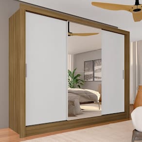 O Guarda Roupa Com Espelho 3 Portas de Correr Casal Aghata conta com amplo espaço de armazenamento e portas deslizantes, você terá fácil acesso a todas as suas roupas. O espelho adiciona um toque de elegância e funcionalidade, permitindo que você se arrume com facilidade!Detalhes Técnicos- Montado: A: 200cm | L: 190cm | P: 52cm- 8 Divisões internas- 5 Prateleiras- 4 Gavetas- 3 Portas de correr- 3 Cabideiros- 2 Puxadores- Gavetas e Prateleiras suportam até 5kgMateriais- MDP 12mm e 15mm- Dobradiças e Corrediças metálicas- Puxadores em polietileno- Cabideiros em alumínio- Revestimento: FF Fosco (Finish Foil)- Tonalidade: Boreal/BrancoConteúdo da Embalagem- 01 Guarda Roupa- Manual de Montagem- Acessórios para MontagemObservações Importantes- As imagens ambientadas são meramente ilustrativas e podem apresentar itens que não incorporam o produto;- Todos os nossos produtos são novos, acompanham documento fiscal e possuem garantia de 3 meses, essa garantia cobre somente defeitos de fabricação;- A entrega só será efetuada no endereço do CEP, caso o endereço seja diferente do CEP informado no pedido, a entrega terá cobrança adicional e o comprador arcará com as despesas;- Não realizamos entregas para zonas rurais, via caminhos fluviais e distritos, por isso não aceitamos CEP GERAL da região;- Não é possível realizar o agendamento de entrega do produto, é necessário que acompanhe o rastreio de seu pedido para saber a previsão de entrega;- As entregas somente serão realizadas para um responsável maior de idade (+18);- Enviamos para diversos estados, sendo assim nossas entregas são realizadas por transportadoras parceiras de nossa empresa. Confira as dimensões antes da compra e certifique-se de que o produto passará por elevadores, portas e corredores já que nossa entrega não inclui a subida de lances de escada, transporte por elevador e o lançamento de produtos, em caso de condomínios residenciais a entrega é feita somente até a portaria. Todas as entregas são realizadas em dias e horários comerciais;- Ao receber os seus produtos observe se a embalagem se encontra em perfeitas condições. Se você adquiriu algum móvel, confira atentamente a quantidade de volumes e o aspecto físico das embalagens. Confira também se a cor do móvel está de acordo com o seu pedido;- O prazo de cancelamento por arrependimento é de até 7 dias corridos a contar da data de recebimento;- Os produtos e assistências são enviados DESMONTADOS, MONTAGENS E DESMONTAGENS recomendamos sempre a contratação de um montador profissional e é válido lembrar que o custo desses serviços é por conta do comprador;- Objetos decorativos que aparecem na foto não acompanham o produto;- Evitar a exposição direta à luz solar e à umidade;- Para limpeza, limpar com pano macio e seco, não utilizar qualquer outro tipo de produtos químicos;- As cores do produto podem variar de acordo com o monitor, a iluminação do ambiente ou sua percepção visual.