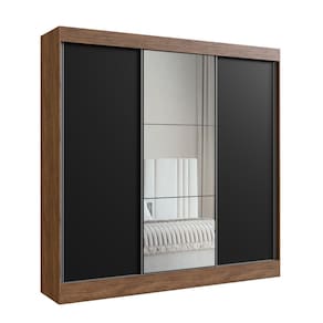 Guarda Roupa Casal com Espelho 3 Portas de Correr 100 MDF Michigan Doripel - Preto