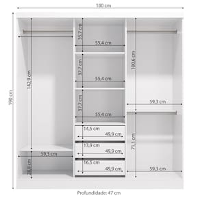 O guarda-roupa casal três portas de correr é sinônimo de qualidade e perfeito para deixar sua rotina mais prática. Produzido em material 100% MDP, ele possui espelho na porta central externa e três gavetas internas com corrediças telescópicas. Os três cabideiros são metálicos e as cinco prateleiras internas garantem o espaço necessário para você guardar e organizar todos os seus pertences.