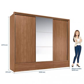 Características: Estrutura em MDP e MDF Acabamento externo com aplicação de tecnologia reverse 3 Portas de correr 5 Gavetas Corrediças telescópicas Cabideiros em alumínio Ripado Cada prateleira suporta até 8kg Montagem Flex