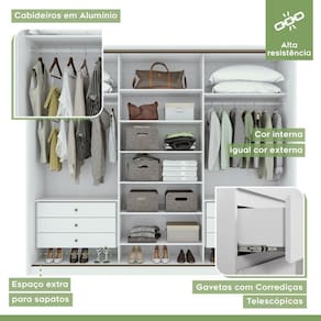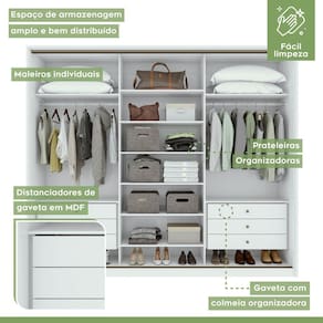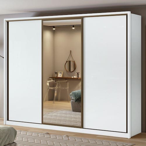 O móvel ideal para completar seu dormitório está aqui. Com este lindo Guarda-Roupa Spazio, você saberá exatamente onde encontrar suas roupas. Feito com MDF, ele possui corrediças telescópica e o visual perfeito para fazer parte do seu lar. Incrível, né? Aproveite. Acabamento da Prateleira: Pintura Escala de Brilho da Prateleira: Fosco Possui Cabideiros: Sim Acabamento da Gaveta: Pintura Escala de Brilho da Gaveta: Fosco Tipo de Corrediça: Metálica Telescópica Material do Puxador da Gaveta: Alumínio Possui Organizador de Gaveta: Sim Acabamento da Porta: Pintura Escala de Brilho da Porta: Brilhante Material do Puxador da Porta: Alumínio Acabamento Externo: Pintura Ambiente Principal: Quarto Capelinha: Não codigo_ean: 7899767387164 Com Calceiro: Não Com Ganchos: Não Com Iluminação: Não Com Painel de TV: Não Com Sapateira: Não Complexidade da Montagem: Alta: deve ser montado por um montador especializado Cor: Branco Cor do Produto: Branco Cor Interna: Bege De Canto: Não Escala de Brilho: Brilhante Espaço para Vestidos Longos: Não Espelho Interno: Não Espessura do Espelho: 3 mm Formato do Espelho: Retangular Gaveta com Divisores: Sim Gaveta(s) com Chave(s): Não Itens Inclusos: 1 Guarda Roupa e Manual de Montagem. Linha ou Coleção: Spazio Glass Manual de Montagem e Instalação: https://product-hub-prd.madeiramadeira.com.br/517289/documents/38a64236-8fe0-417c-ac9f-64af7de0b9da70208164712081647220806609.pdf Material da Gaveta: MDF Material da Porta: MDF Material da Prateleira: MDF Material Principal: MDF Necessita Montagem: Sim Origem do Produto: Nacional Peso: 265,57 kg Peso Máximo por Gaveta: 6 kg Peso Máximo por Prateleira: 11 kg Possui Calceiros: Não Possui Espelho: Sim Possui Pés: Não Possui Portas: Sim Produto Montado: Sim Quantidade de Espelho: 01 Quantidade de Gavetas: 06 Gavetas Quantidade de Prateleiras: 10 Prateleiras Recomendações de Uso, Manutenção e Limpeza: Limpar somente com pano macio e seco, não colocar diretamente em incidência da luz solar, não colocar em lugar úmido. Sistema de Montagem: Parafusos e Minifix. Suporta Até (kg): 100 kg Tipo de Corrediça da Gaveta: Metálica Telescópica Tipo de Dobradiça/Corrediça da Porta: Alumínio Tipo de Fixação do Espelho: Molduras Tipo de Gaveta: Interna Tipo de Guarda-Roupa: Casal Tipo de Puxador da Gaveta: Externo Tipo de Puxador da Porta: Externo Ean: 7899767387164