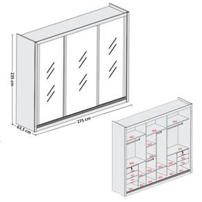 Caracter?sticas: 4 Cabideiros em alum?nio 6 Gavetas com puxadores embutidos 3 Portas de Correr 9 Prateleiras Corredi?as telescopicas Costas parafusadas Estrutura em MDF Gaveta interna com chave Modulados para roupas longas Possui espelhos