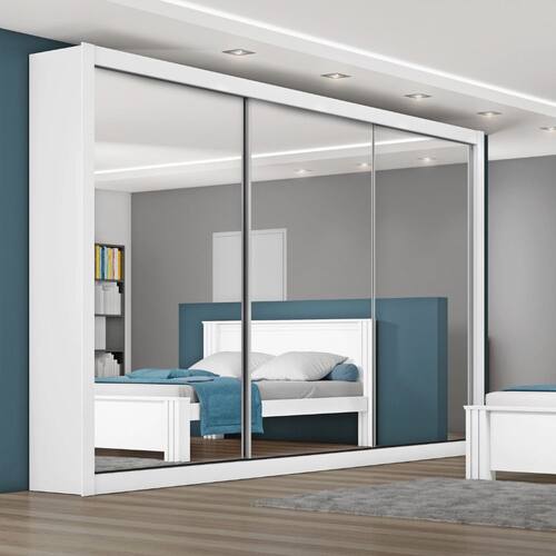O Guarda Roupa Casal com Espelho 3 Portas de Correr Toronto M?veis Europa ? uma op??o elegante e funcional para o quarto. Ele oferece amplo espa?o interno, com 06 gavetas de corredi?as telesc?picas, duas delas com chave para maior seguran?a. Possui compartimentos para malas, roupas de cama e cal?ados, al?m de prateleiras fixas e remov?veis que permitem armazenar roupas longas. Para garantir durabilidade, tem costas grossas parafusadas e trilhos de alum?nio. As portas espelhadas com moldura de alum?nio e roldanas com molas asseguram que n?o saiam do trilho.