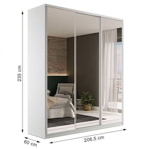 O Guarda Roupa Zermatt conta com 3 portas de correr com espelho. Produzido em MDP com acabamento melamínico BP, proporciona resistência e durabilidade ao produto. Modelo com corrediças telescópicas e rolamentos de alto padrão. Ideal para quem busca espaço e qualidade. Com 2,35m de altura por 2,05m de largura, o produto possui amplo espaço interno. Acompanhado de 3 gavetas, cabideiros e prateleiras removíveis para uso geral. O móvel é lindo e certamente atenderá suas expectativas! Acabamento da Prateleira: BP Marromamínico Escala de Brilho da Prateleira: Fosco Possui Cabideiros: 02 Acabamento da Gaveta: BP Marromamínico Escala de Brilho da Gaveta: Fosco Possui Organizador de Gaveta: Não Acabamento da Porta: BP Marromamínico Escala de Brilho da Porta: Fosco Material do Puxador da Porta: Acabamento dos Pés: Altura do Espelho: 223 cm Altura dos Pés: 6 cm Ambiente Principal: Quarto Complexidade da Montagem: Média: pode ser montado por mais de uma pessoa e/ou necessite de maior conhecimento para montagem Cor: Branco Cor do Produto: Branco Cor Interna: Branco Escala de Brilho: Fosco Espessura do Espelho: 3 mm Formato do Espelho: Retangular Gaveta com Chave: Não Itens Inclusos: 1 Guarda Roupa, Kit Ferragens e Manual de Montagem Largura do Espelho: 60 cm Linha ou Coleção: Zermatt Manual de Montagem e Instalação: https://cdn2.madeiramadeira.com.br/atributo/tom-da-cor/717468-roupeiro-3p-235cm-montagem.pdf Material da Gaveta: MDP Material da Porta: MDP Material da Prateleira: MDP Material dos Pés: MDP Material Principal: MDP Montagem Flex: Nao Necessita Montagem: Sim Origem do Produto: Nacional Peso: 170 kg Peso Máximo por Gaveta: 25 kg Peso Máximo por Prateleira: 20 kg Possui Calceiros: Não Possui Espaço para Vestidos Longos: Sim Possui Espelho: Sim Possui Espelho Interno: Não Possui Ganchos: Não Possui Pés: 02 Possui Portas: 03 Possui Prateleiras: 14 Possui Sapateira: Sim Quantidade de Espelho: 03 Espelhos com Tamanhos Iguais Recomendações de Uso, Manutenção e Limpeza: Pano úmido Sapatas Niveladoras: Não Sistema de Montagem: Parafusos, Cavilhas e Minifix Tipo de Corrediça da Gaveta: Metálica Telescópica Tipo de Dobradiça/Corrediça da Porta: Plástica Tipo de Fixação do Espelho: Silicone Tipo de Gaveta: Interna Tipo de Guarda-Roupa: Casal Tipo de Puxador da Gaveta: Não Possui Tipo de Puxador da Porta: Embutido Marca: RR Móveis