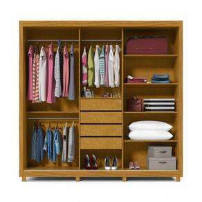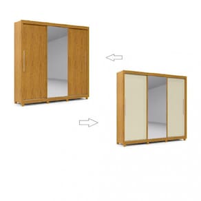 Características: Estrutura em MDP 3 Cabideiros 4 Gavetas internas com corrediças telescópicas Amplo espaço interno Interno na tonalidade Porta de Espelho Prateleira organizadora Puxador central em MDF Puxadores laterais em alumínio Obs.: As portas são flex, opcional escolha da tonalidade das portas no momento da montagem