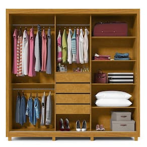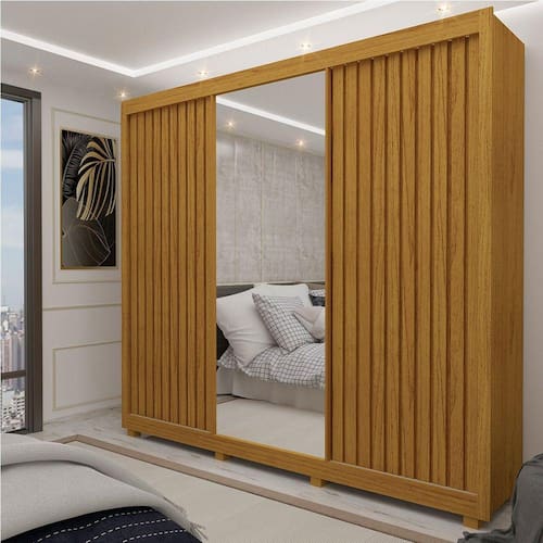 O Roupeiro Royale tem um design elegante e moderno, perfeito para seu quarto. Com interior espaçoso, este roupeiro conta com quatro gavetas de corrediças telescópicas, quatro prateleiras e três tubos cabideiros para uma boa organização. Possui três portas de correr sendo as duas laterais de ripas autênticas em 100% MDF e a central com espelho inteiriço, unindo funcionalidade e beleza. Acabamento da Prateleira: Pintura Texturizada UV Escala de Brilho da Prateleira: Fosco Possui Cabideiros: 02 Acabamento da Gaveta: Pintura Texturizada UV Escala de Brilho da Gaveta: Semi-Fosco Possui Organizador de Gaveta: Não Acabamento da Porta: Pintura Texturizada UV Escala de Brilho da Porta: Fosco Material do Puxador da Porta: Alumínio Acabamento dos Pés: Pintura Altura do Espelho: 200.8 Altura dos Pés: 6.5 Ambiente Principal: Quarto Complexidade da Montagem: Alta: deve ser montado por um montador especializado Cor: Marromle Cor do Produto: Marromle Cor Flex: Não Cor Interna: Marromle Escala de Brilho: Semi-Fosco Espessura do Espelho: 3 Formato do Espelho: Retangular Gaveta com Chave: Não Guarda-Roupa Suporta Até (kg): 150 Itens Inclusos: 1 Guarda Roupa, Kit Ferragens e Manual de Montagem. Largura do Espelho: 71.8 Linha ou Coleção: Royale Manual de Especificação Técnica: https://cdn2.madeiramadeira.com.br/atributo/gelius/1245013-royale-ripado-3p-c-pes-roupeiro.pdf Manual de Montagem e Instalação: https://cdn2.madeiramadeira.com.br/atributo/gelius/1245012-royale-ripado-3p-c-pes-roupeiro.pdf Material da Gaveta: MDP Material da Porta: MDP/Vidro Material da Prateleira: MDP Material dos Pés: Madeira Maciça Material Principal: MDP Montagem Flex: Não Necessita Montagem: Sim Origem do Produto: Nacional Peso: 171 Peso Máximo por Gaveta: 10 Peso Máximo por Prateleira: 10 Possui Calceiros: 01 Possui Espaço para Vestidos Longos: Não Possui Espelho: Sim Possui Espelho Interno: Não Possui Ganchos: Não Possui iluminação: Não Possui Painel de TV: Não Possui Pés: 08 Possui Portas: 03 Possui Prateleiras: 06 Possui Sapateira: Não Quantidade de Espelho: 01 Recomendações de Uso, Manutenção e Limpeza: A limpeza do produto deve ser feita por meio do uso de um pano, umedecido com água, e um pano seco. É importante para fazer a limpeza do móvel nunca utilizar produtos químicos ou abrasivos. Para conservar o padrão de qualidade dos produtos Gelius, nunca arraste um móvel se este estiver cheio. Nunca puxe o móvel de frente para você, pois ele pode balançar e provocar acidentes. Sapatas Niveladoras: Não Sistema de Montagem: Convencional: parafusos, pregos, cavilhas, etc. Tipo de Corrediça da Gaveta: Metálica Telescópica Tipo de Dobradiça/Corrediça da Porta: Metálica Tipo de Fixação do Espelho: Molduras Tipo de Gaveta: Interna Tipo de Guarda-Roupa: Casal Tipo de Madeira Maciça dos Pés: Pinus Tipo de Puxador da Gaveta: Não Possui Tipo de Puxador da Porta: Externo