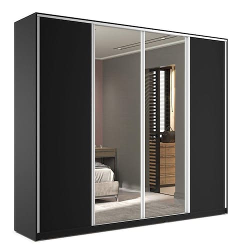 O Guarda Roupa Zermatt conta com 4 portas de correr com 2 espelhos. Produzido em MDP com acabamento melamínico BP e fitas de borda em PVC, proporciona resistência e durabilidade ao produto. Modelo com corrediças telescópicas e rolamentos de alto padrão. Ideal para quem busca espaço e qualidade. Com 2,35m de altura por 2,77m de largura, o produto possui amplo espaço interno. Acompanhado de 6 gavetas, cabideiros e prateleiras removíveis para uso geral. O móvel é lindo e certamente atenderá suas expectativas! Acabamento da Prateleira: BP Marromamínico Escala de Brilho da Prateleira: Fosco Possui Cabideiros: 03 Acabamento da Gaveta: BP Marromamínico Escala de Brilho da Gaveta: Fosco Material do Puxador da Gaveta: MDP Possui Organizador de Gaveta: Não Acabamento da Porta: BP Marromamínico Escala de Brilho da Porta: Fosco Material do Puxador da Porta: Alumínio Acabamento dos Pés: BP Marromamínico Altura do Espelho: 223 cm Altura dos Pés: 6 cm Ambiente Principal: Quarto Complexidade da Montagem: Alta: deve ser montado por um montador especializado Cor: Preto Cor do Produto: Preto Cor Interna: Preto Escala de Brilho: Fosco Espessura do Espelho: 3 mm Formato do Espelho: Retangular Gaveta com Chave: Não Itens Inclusos: 1 Guarda Roupa, Kit Ferragens e Manual de Montagem Largura do Espelho: 63 cm Linha ou Coleção: Zermatt Manual de Montagem e Instalação: https://cdn2.madeiramadeira.com.br/atributo/tom-da-cor/955240-roupeiro-zermatt-4p-235cm-montagem.pdf Material da Gaveta: MDP/HDF Material da Porta: MDP Material da Prateleira: MDP Material dos Pés: MDP Material Principal: MDP Necessita Montagem: Sim Origem do Produto: Nacional Peso: 230 kg Peso Máximo por Gaveta: 35 kg Peso Máximo por Prateleira: 20 kg Possui Calceiros: Não Possui Espelho: Sim Possui Pés: Rodapé Possui Portas: 04 Possui Prateleiras: 16 Quantidade de Espelho: 02 Espelhos com Tamanhos Iguais Recomendações de Uso, Manutenção e Limpeza: Pano úmido Sapatas Niveladoras: Não Sistema de Montagem: Parafusos e Cavilhas Tipo de Corrediça da Gaveta: Metálica Telescópica Tipo de Dobradiça/Corrediça da Porta: Alumínio Tipo de Fixação do Espelho: Silicone Tipo de Gaveta: Interna Tipo de Guarda-Roupa: Casal Tipo de Puxador da Gaveta: Não Possui Tipo de Puxador da Porta: Embutido Marca: RR Móveis