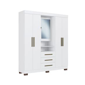 Caracteristicas: Material em MDP: proporciona resistencia e estabilidade a peca Portas em MDP: maior robustez e durabilidade no uso diario Espelho incluso: amplia a sensacao de espaco Fechadura na porta com espelho: seguranca e protecao extra para seus pertences 3 Gavetas internas com corredicas metalicas: garantem abertura e fechamento suaves, alem de mais resistencia 5 Portas funcionais: facilitam a organizacao de roupas, acessorios e objetos pessoais Pes incluso: eleva o movel, facilitando a limpeza e protegendo contra a umidade Acabamento acetinado: toque refinado e aparencia sofisticada, ideal para qualquer estilo de decoracao Medidas do espelho: 35x64cm Gavetas suportam peso de ate 03 kg Prateleiras suportam peso de ate 05 kg