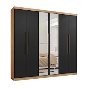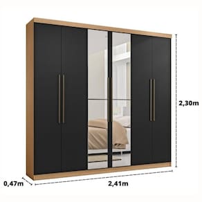 O Guarda Roupa 6 portas Montreal é ideal para grandes ambientes por seus imponentes 2,40 m de largura e 2,30 de altura. Com uma excelente divisão interna, este "roupeirão" é robusto, produzido 100% em MDP, todo em painel 15 mm. Possui 3 gavetas internas com corrediças metálicas, puxadores em ABS, cabideiros em alumínio. Com um acabamento diferenciado, possui maleiro amplo e incríveis 6 prateleiras espaçosas. Para completar, o Guarda Roupa Montreal conta com espelhos que podem ser fixados a sua preferência. Acabamento da Prateleira: Impressão Escala de Brilho da Prateleira: Fosco Possui Cabideiros: 02 Acabamento da Gaveta: Impressão Possui Organizador de Gaveta: Não Acabamento da Porta: Impressão Escala de Brilho da Porta: Fosco Altura do Espelho: 97 cm Ambiente Principal: Quarto Complexidade da Montagem: Média: pode ser montado por mais de uma pessoa e/ou necessite de maior conhecimento para montagem Cor: Amêndoa/Preto Cor do Produto: Amendoa/Preto Cor Interna: Amêndoa Escala de Brilho: Fosco Espessura do Espelho: 3 mm Fita Integrada: Sim Formato do Espelho: Retangular Gaveta com Chave: Não Itens Inclusos: 1 Guarda Roupa e Manual de Montagem. Largura do Espelho: 28 cm Manual de Montagem e Instalação: https://cdn2.madeiramadeira.com.br/atributo/mapi-moveis/439344-9966.pdf Material da Gaveta: MDP Material da Porta: MDP Material da Prateleira: MDP Material Principal: MDP Necessita Montagem: Sim Origem do Produto: Nacional Peso: 180,05 kg Peso Máximo por Gaveta: 5 kg Peso Máximo por Prateleira: 5 kg Possui Calceiros: Não Possui Espelho: Sim Possui Pés: Não Possui Portas: 06 Possui Prateleiras: 09 Quantidade de Espelho: 04 Espelhos com Tamanhos Iguais Recomendações de Uso, Manutenção e Limpeza: Limpar com flanela ou pano macio seco, não utilizar produtos abrasivos, desengordurantes, álcool ou solvente. Não expor o produto diretamente à luz solar e à umidade. Sistema de Montagem: Parafusos, Cavilhas, Porcas Cilíndricas e Pregos. Tipo de Corrediça da Gaveta: Metálica Simples Tipo de Dobradiça/Corrediça da Porta: Alumínio Tipo de Fixação do Espelho: Fita Dupla Face Tipo de Gaveta: Interna Tipo de Guarda-Roupa: Casal Tipo de Puxador da Gaveta: Não Possui Tipo de Puxador da Porta: Externo