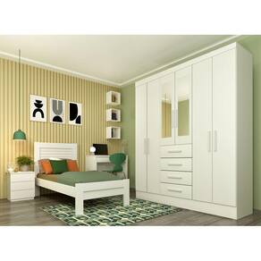 Guarda Roupa Casal com Espelho 6 Portas 4 Gavetas - Arizona-Neve - Tcil Móveis