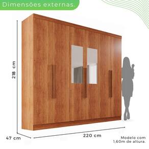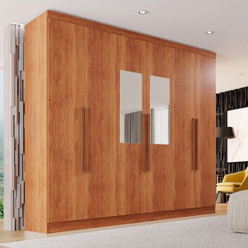 O Guarda Roupa Casal 6 Portas 4 Gavetas Coliseu tem um design elegante e moderno, perfeito para seu quarto. Com interior espaçoso, este roupeiro conta com quatro gavetas de corrediças telescópicas, sete prateleiras e três cabideiros para uma boa organização. Produzido com materiais de ótima qualidade unindo funcionalidade e beleza, ele conta com divisão ele e ela e sapateira embutida. Para garantir uma maior sustentação temos um suporte embutido reforçando a gaveta. Um excelente móvel para completar o seu quarto. Acabamento da Prateleira: Pintura UV Escala de Brilho da Prateleira: Fosco Possui Cabideiros: 03 Acabamento da Gaveta: Pintura UV Material do Puxador da Gaveta: MDF Possui Organizador de Gaveta: Não Acabamento da Porta: Pintura UV Escala de Brilho da Porta: Fosco Material do Puxador da Porta: MDF Altura do Espelho: 70 Ambiente Principal: Quarto Complexidade da Montagem: Alta: deve ser montado por um montador especializado Cor: Cinamomo Cor do Produto: Cinamomo Escala de Brilho: Fosco Espessura do Espelho: 3 Formato do Espelho: Retangular Gaveta com Chave: Não Itens Inclusos: 1 Guarda Roupa, kit ferragens e manual de montagem Largura do Espelho: 20 Linha ou Coleção: Coliseu Manual de Montagem e Instalação: https://cdn2.madeiramadeira.com.br/atributo/salleto/1726996-roupeiro-coliseu-6-portas.pdf Material da Gaveta: MDP Material da Porta: MDP Material da Prateleira: MDP Material Principal: MDP modular: Não Necessita Montagem: Sim Origem do Produto: Nacional Peso: 129.7 Peso Máximo por Gaveta: 5 Peso Máximo por Prateleira: 3 Possui Calceiros: Não Possui Espelho: Sim Possui Pés: Não Possui Portas: Sim Possui Prateleiras: Sim Quantidade de Espelho: 02 Espelhos com Tamanhos Iguais Quantidade de Gavetas: 04 Gavetas Quantidade de Prateleiras: 07 Prateleiras Recomendações de Uso, Manutenção e Limpeza: Pano levemente umedecido e pano seco. Não utilizar produtos de limpeza abrasivos. Sistema de Montagem: Parafusos, Cavilhas, Dobradiças e Puxadores. Tipo de Corrediça da Gaveta: Metálica Telescópica Tipo de Dobradiça/Corrediça da Porta: Metálica Tipo de Fixação do Espelho: Parafusos Tipo de Gaveta: Interna Tipo de Guarda-Roupa: Casal Tipo de Puxador da Gaveta: Não Possui Tipo de Puxador da Porta: Externo