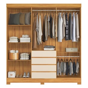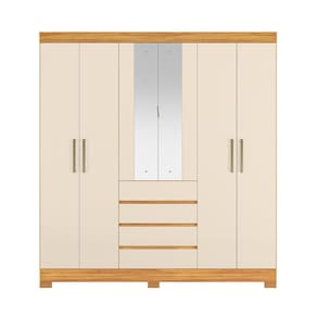 Caracteristicas: 4 Gavetas corredicas telescopicas 6 Portas sendo duas com espelhos 4 Prateleiras internas Acabamento Touch Cabideiro,calceiro,dobradicas e puxadores metalicos Estrutura em MDF Pes em PVC Revestimento em Pintura UV Puxadores em ABS