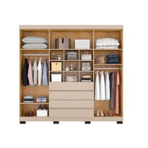Guarda Roupa Casal com Espelho 6 Portas 4 Gavetas e Pés Manuela Damulti O Guarda-Roupa Manuela foi desenvolvido para quem busca funcionalidade, organização e sofisticação no quarto. Com 6 portas de bater e 4 gavetas internas, o modelo oferece amplo espaço para acomodar roupas, acessórios e demais pertences de forma organizada. Conta ainda com cabideiro metálico resistente, ideal para peças que precisam ficar sempre bem conservadas. Suas prateleiras internas proporcionam uma melhor divisão do espaço, garantindo funcionalidade no dia a dia. Além disso, os espelhos nas portas agregam elegância ao design e contribuem para ampliar a sensação de espaço no ambiente. Uma escolha inteligente para quem deseja unir organização, durabilidade e estilo em um único móvel.