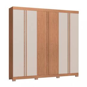 Guarda Roupa Casal com Espelho 6 Portas 4 Gavetas Eros Móveis Castro - Bege Claro