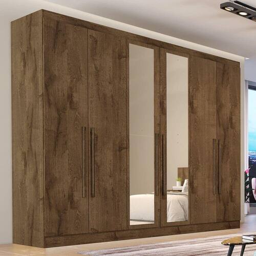 Guarda Roupa Casal com Espelho 6 Portas 4 Gavetas - Oslo-Braúna - Made Marcs