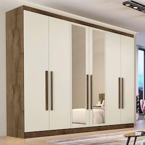 Guarda Roupa Casal com Espelho 6 Portas 4 Gavetas - Oslo-Braúna/Off White - Made Marcs