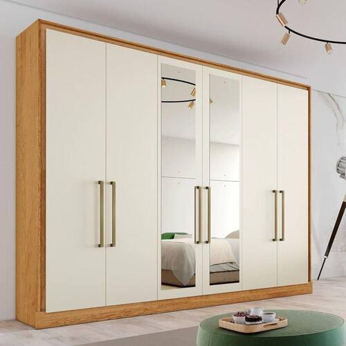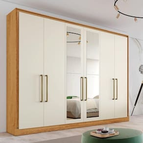 Guarda Roupa Casal com Espelho 6 Portas 6 Gavetas - Argos-Peroba/Off White - Made Marcs