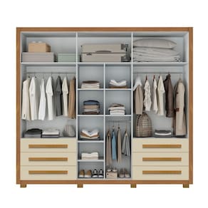 Caracteristicas: 6 Portas Amplo espaco interno Cabideiro e calceiro em aluminio 6 Gavetas com corredicas telescopicas -abertura total e suave- Pes que facilitam a limpeza Material em MDP Espelho