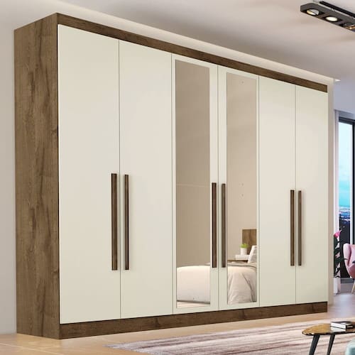 Guarda Roupa Casal com Espelho 6 Portas 6 Gavetas - Oslo-Braúna/Off White - Made Marcs Guarda Roupa Oslo possui um modelo funcional que foi pensado para deixar seu ambiente completo! Possui 06 gavetas com corrediças telescópicas, cabideiros em alumínio, interno ele e ela, puxadores alumínio. Espaço para roupas longas, prateleiras funcionais e maleiro. Uma moldura externa reversível com sistema flex collor, deixando-o ainda mais lindo, moderno e exclusivo. Aproveite! Faz parte deste ambiente: Guarda Roupa Casal com Espelho 6 Portas 6 Gavetas - Oslo-Braúna/Off White - Made Marcs Obs: Objetos de decoração não inclusos. Particularidades do guarda-roupa: Características: - 100% MDF - 6 gavetas - 11 prateleiras - Moldura externa flex collor - Corrediças telescópicas: abertura total das gavetas - Modulação para roupas longas - Compartimento para malas e roupa de cama - Excelente aproveitamento dos espaços internos: ideal para organizar roupas e acessórios de forma prática - Cabideiros e calceiros metálicos Dimensões: Altura: 2,35 metros Largura: 2,10 metros Profundidade: 50 centímetros Informações Importantes: -O envio desse produto é feito através de transportadora. -Produtos podem apresentar diferenças de tonalidades entre a foto na tela e o produto real, devido a calibração de cor de tela. -Limpar com flanela ou pano macio. Não utilizar álcool. Não utilizar produtos abrasivos ou corrosivos. -Nós prezamos pela qualidade da entrega em primeiro lugar, trabalhamos com transportadoras altamente selecionadas e os melhores materiais de embalagem. -A montagem é de total responsabilidade do comprador. Antes de comprar, verifique o espaço disponível para a montagem. -Certifique-se de que o produto caiba em elevadores e vãos de escadas, não fazemos içamentos. Quaisquer despesas deste tipo ficam a cargo do cliente -Garantia de 3 meses contra defeitos de fabricação.
