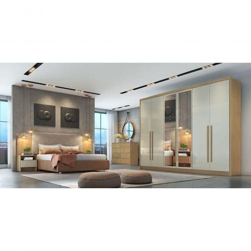 Guarda Roupa Casal Com Espelho 6 Portas 8 Gavetas - Robust Plus