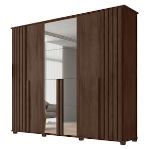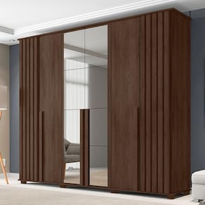 Leve a elegância do ripado para completar a decoração do seu quarto. O guarda-roupa casal Amsterdã da RV conta com 6 portas de bater, sendo que as duas das laterais contam com detalhes em ripado. Ele é um guarda-roupa grande e conta com uma excelente divisão no seu espaço interno. São 4 gavetas internas com corrediças telescópicas, cabideiros, maleiros e nichos. Você consegue organizar todos os seus pertences sem apertos. Suas portas centrais contam com espelhos, que trazem um ar de elegância e modernidade para o móvel. O guarda-roupa casal é produzido com madeiras MDF e MDP, materiais resistentes e com ótima durabilidade. Quer transformar seu quarto? Já garanta o seu roupeiro Amsterdã RV. NA